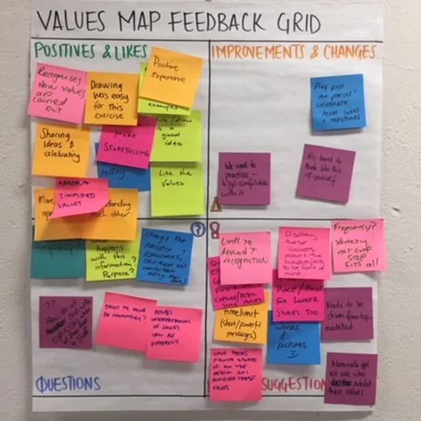 One of the tools we use at G2 Innovation to document and share learning (and avoid wasting resources) is the Feedback Grid. This can be used at the prototyping stage, but we also use it effectively after ideation when combined with other idea selection tools. The Feedback Grid allows teams, users and outsiders to evaluate an idea, providing positives, improvements, other ideas and ask questions in a non-confrontational and inclusive fashion.